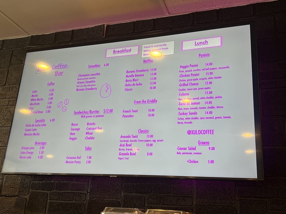 Xulo Coffee Bar Menu (2025 Update)